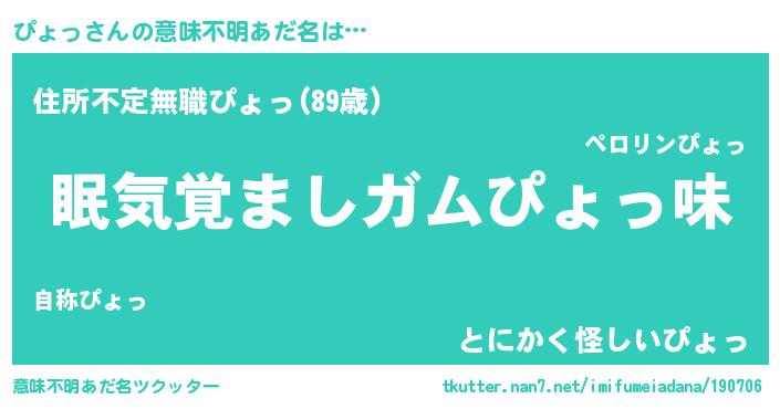 | ヘコむあだ名 | 『ぴょぷりん』『ぴょっふぃ~』 |