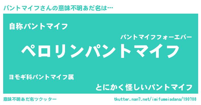 | 肩書あだ名 | 『パントマイフCEO』『パントマイフ閣下』 |