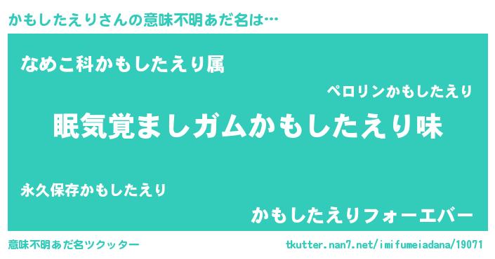 | ヒーロー風カッコイイあだ名 | 『正義の使者かもしたえり』 |
