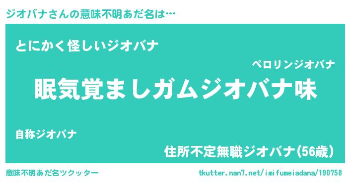 | ヒーロー風カッコイイあだ名 | 『慈愛の使者ジオバナ』『魔戒騎士ジオ』 |