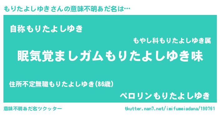 | 男性向けラノベタイトル風あだ名 | 『ノーゲーム・ノーモリタヨシユキ』 |
