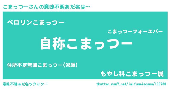 | 女子向けラノベタイトル風あだ名 | 『こまっつーなんてお断りですっ。』 |