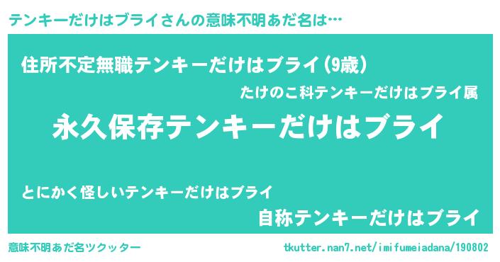 | ヘコむあだ名 | 『テンキーだけはブライ(笑)』『テンっ子』 |