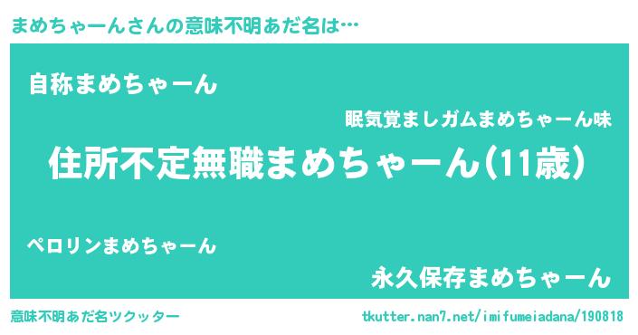 | 女子向けラノベタイトル風あだ名 | 『悪役まめちゃーんに転生したようですが、知った事ではありません』 |