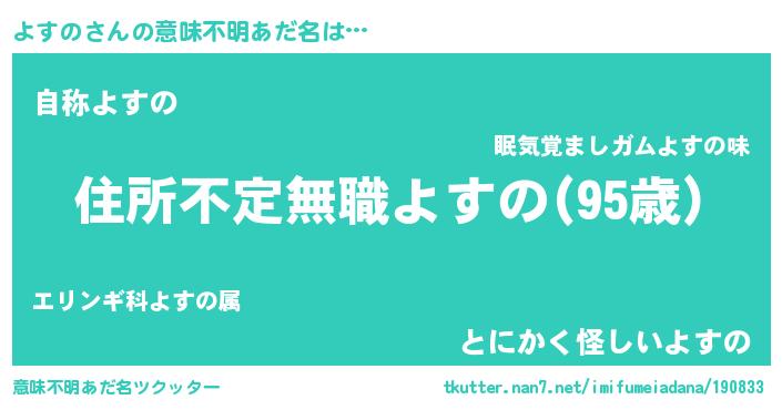 | 料理風あだ名 | 『よすののカルパッチョ風』 |