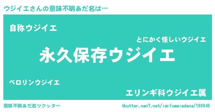 | 男性向けラノベタイトル風あだ名 | 『ウジイエという概念が存在しない退屈な世界 』 |