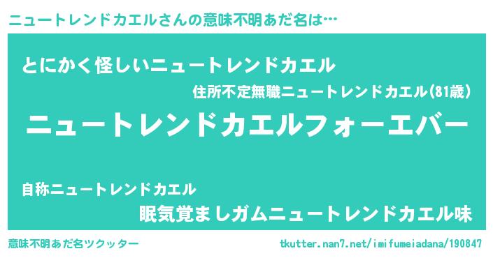 | 欧米人風あだ名 | 『ニュートレンドカエルクリステル』 |