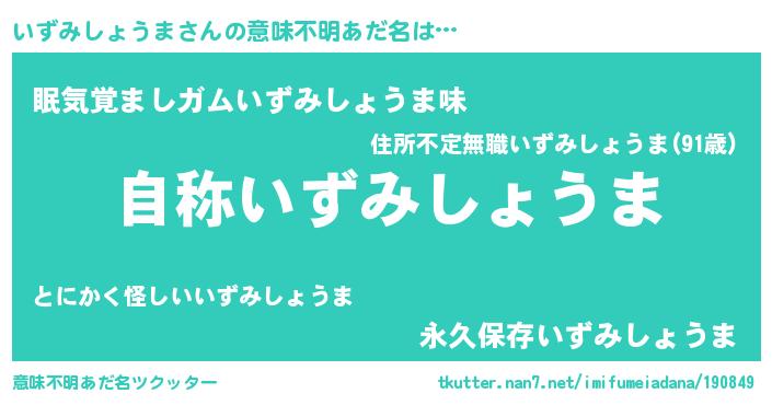 | 男性向けラノベタイトル風あだ名 | 『Re:いずみしょうまから始める異世界生活』 |