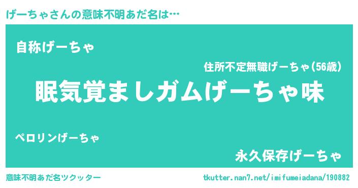 | ヒーロー風カッコイイあだ名 | 『慈愛の使者げーちゃ』『ネオゲーチャ』 |