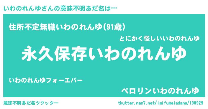 | 男性向けラノベタイトル風あだ名 | 『いわのれんゆという概念が存在しない退屈な世界 』 |