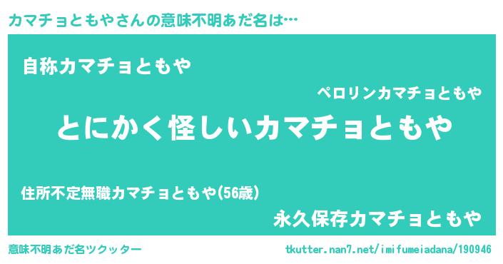 | ヘコむあだ名 | 『カマっぺ』『カマチョともや(遠い目)』 |