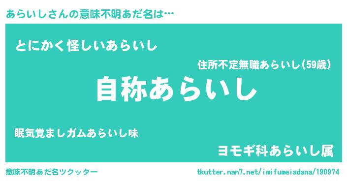 | ポケモン風あだ名 | 『アラセウス』『ヒアライシ』 |