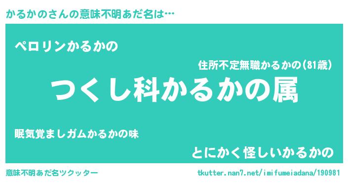 | 欧米人風あだ名 | 『トリンドルかるかの』 |