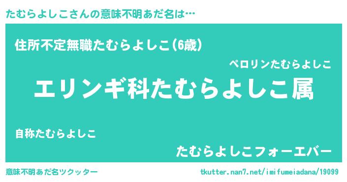 | 男性向けラノベタイトル風あだ名 | 『タムラヨシコスレイヤー』 |