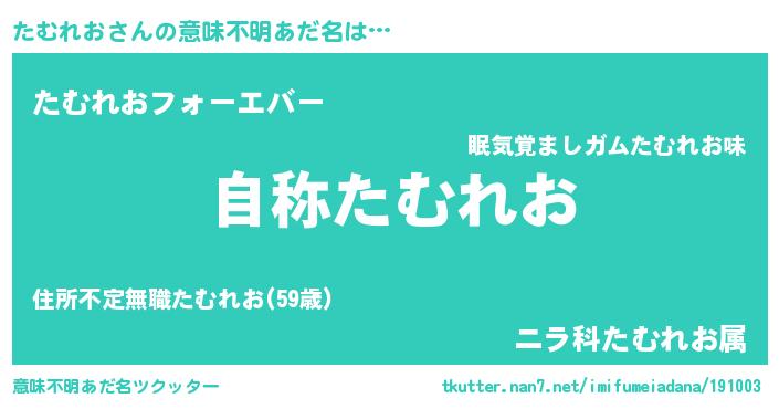 | 肩書あだ名 | 『たむれお総統』『たむれお大統領』 |