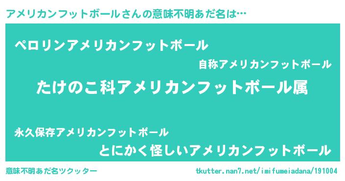 | 男性向けラノベタイトル風あだ名 | 『転生したらアメリカンフットボールだった件』 |