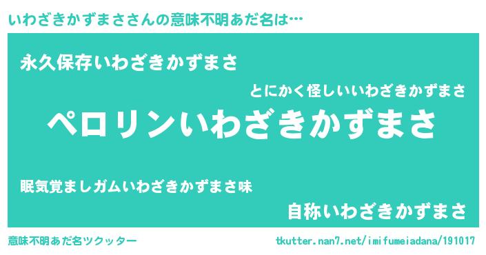 | 肩書あだ名 | 『いわざきかずまさ御曹司』 |