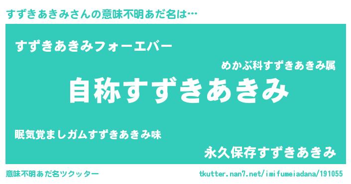 | 男性向けラノベタイトル風あだ名 | 『Re:すずきあきみから始める異世界生活』 |