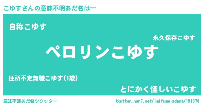 | ファンタジー風あだ名 | 『コユフェル』『ゼコユトゥ』 |