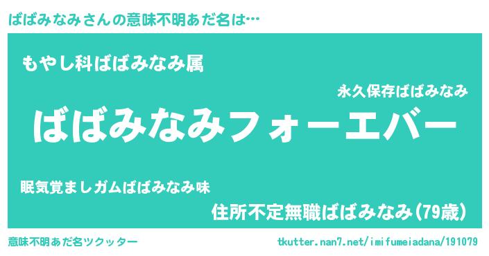 | ファンタジー風あだ名 | 『エターナルババミナミー』 |