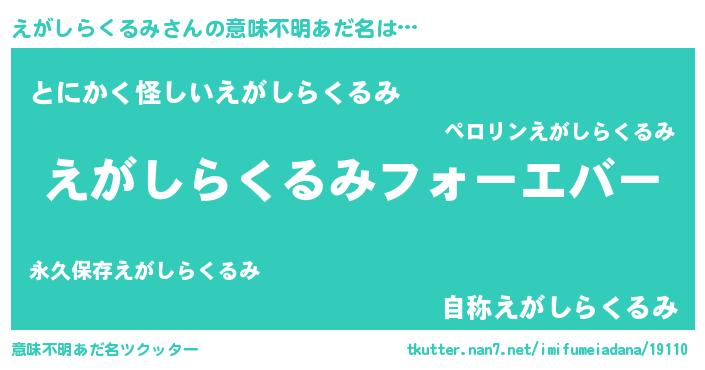 | 欧米人風あだ名 | 『えがしらくるみクリステル』 |