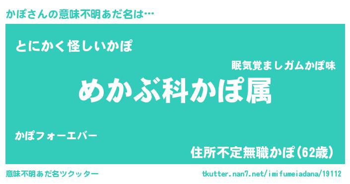 | 肩書あだ名 | 『かぽ少将』『かぽ班長』『かぽ船長』 |