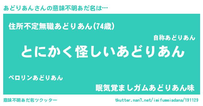 | 胡散臭い通販商品みたいなあだ名 | 『全米が絶賛したサプリメント…その名も「あどりあん」』 |