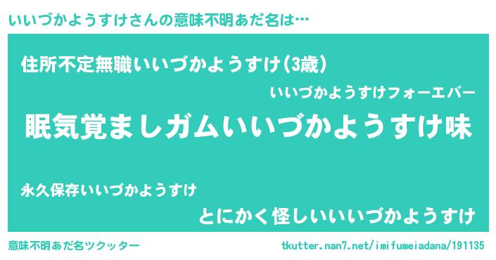 | 男性向けラノベタイトル風あだ名 | 『うちのいいづかようすけが世界を掌握している!』 |