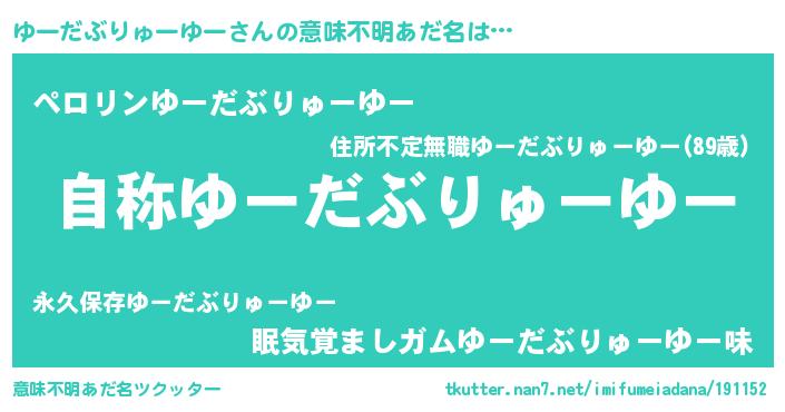 | ヘコむあだ名 | 『ゆーもー』『ゆーだぶりゅーゆー(遠い目)』 |