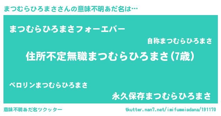 | 女子向けラノベタイトル風あだ名 | 『乙女ゲームの破滅フラグしかない悪役まつむらひろまさに転生してしまった…』 |