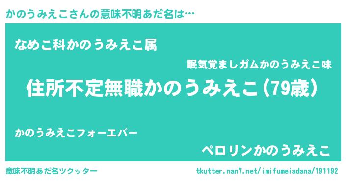 | 料理風あだ名 | 『かのうみえこのカルパッチョ風』 |