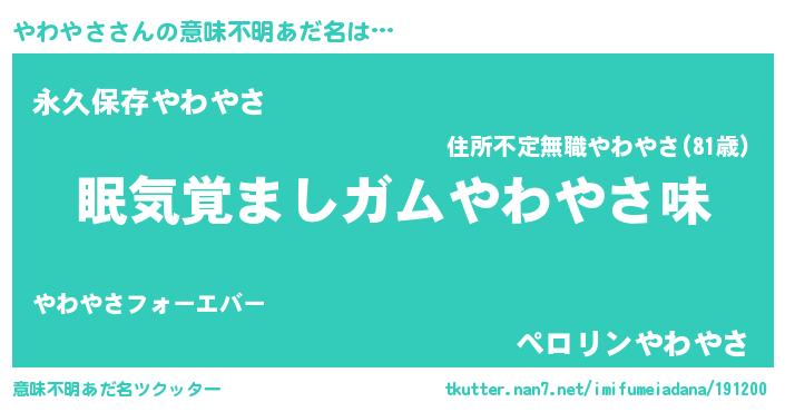 | 欧米人風あだ名 | 『ダニエルやわやさ』『マイケルやわやさ』 |