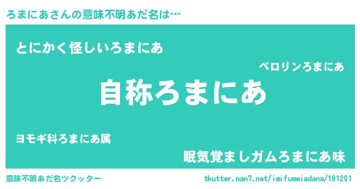 | ヘコむあだ名 | 『ろまぷりん』『ろまもー』 |