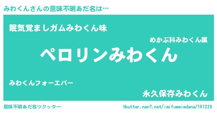 | 胡散臭い通販商品みたいなあだ名 | 『億万長者になれるブレスレット…その名も「みわくん」』 |