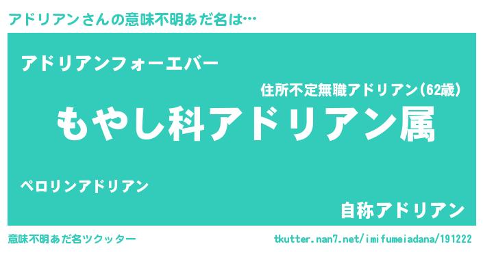 | 男性向けラノベタイトル風あだ名 | 『転生したらアドリアンだった件』 |