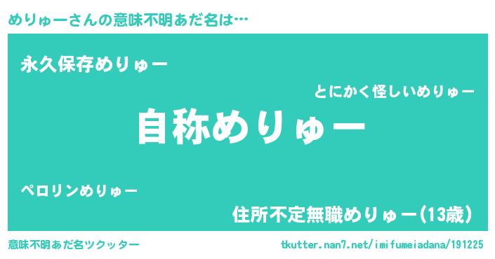 | ヘコむあだ名 | 『めりゅー(遠い目)』『めりを』 |