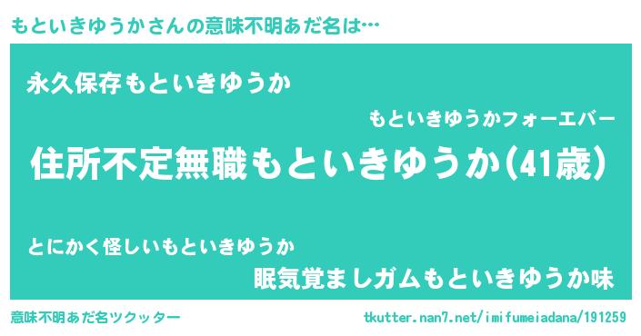 | ヘコむあだ名 | 『もといきゆうか(笑)』『豆乳』 |