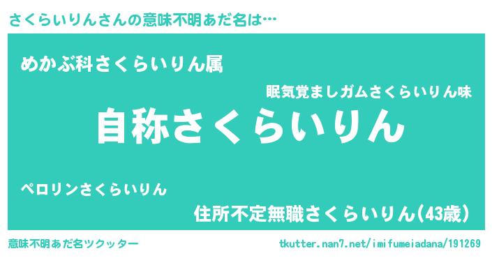 | 欧米人風あだ名 | 『ケンブリッジさくらいりん』 |