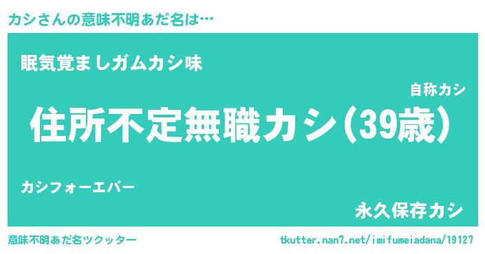 | 男性向けラノベタイトル風あだ名 | 『この素晴らしい世界にカシを!』 |