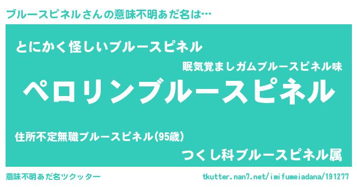 | 男性向けラノベタイトル風あだ名 | 『うちのブルースピネルが世界を掌握している!』 |