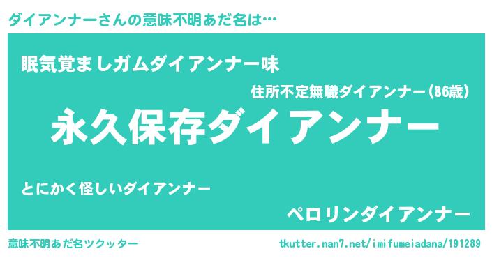 | 欧米人風あだ名 | 『アンジェラ・ダイアンナー』 |