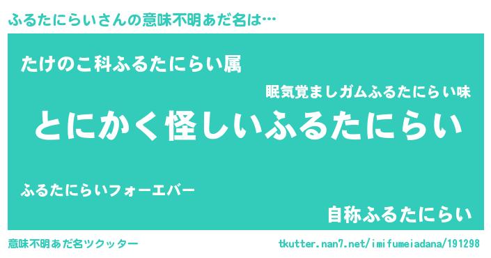 | 胡散臭い通販商品みたいなあだ名 | 『信頼と実績のサプリメント…その名も「ふるたにらい」』 |