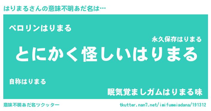 | 自動車の名前っぽいあだ名 | 『ハルトリパン』『ハリティマ』 |