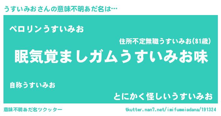 | ヒーロー風カッコイイあだ名 | 『慈愛の使者うすいみお』『暗黒騎士ウス』 |