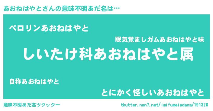| 肩書あだ名 | 『あおねはやと上級大将』 |