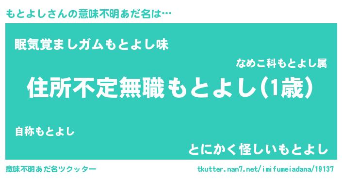 | 男性向けラノベタイトル風あだ名 | 『もとよしに滅ぼされるだけの簡単なお仕事です』 |
