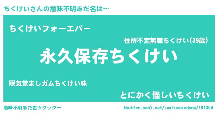 | ヘコむあだ名 | 『ちくけい(苦笑)』『なまこ酢』 |
