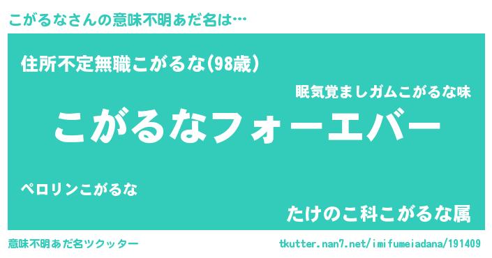 | 女子向けラノベタイトル風あだ名 | 『こがるなの雑貨屋さん』 |