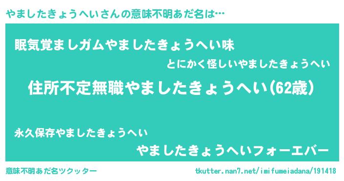| 男性向けラノベタイトル風あだ名 | 『この素晴らしい世界にやましたきょうへいを!』 |