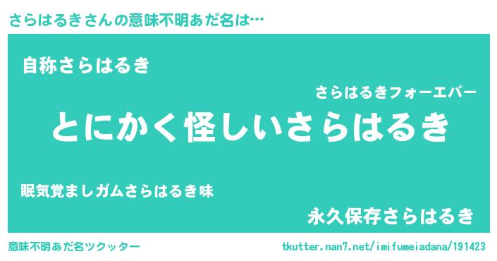 | 胡散臭い通販商品みたいなあだ名 | 『信頼と実績のサプリメント…その名も「さらはるき」』 |